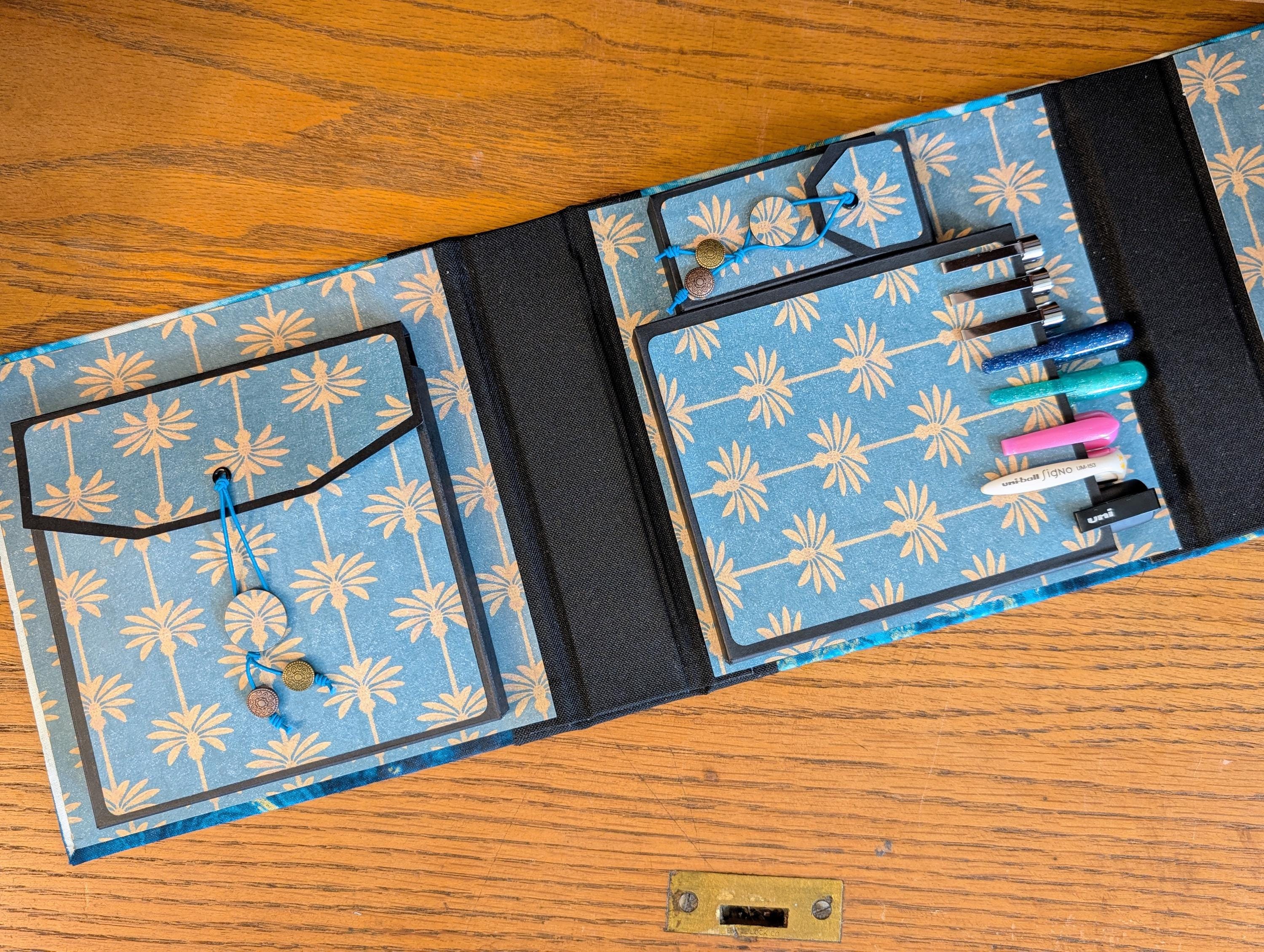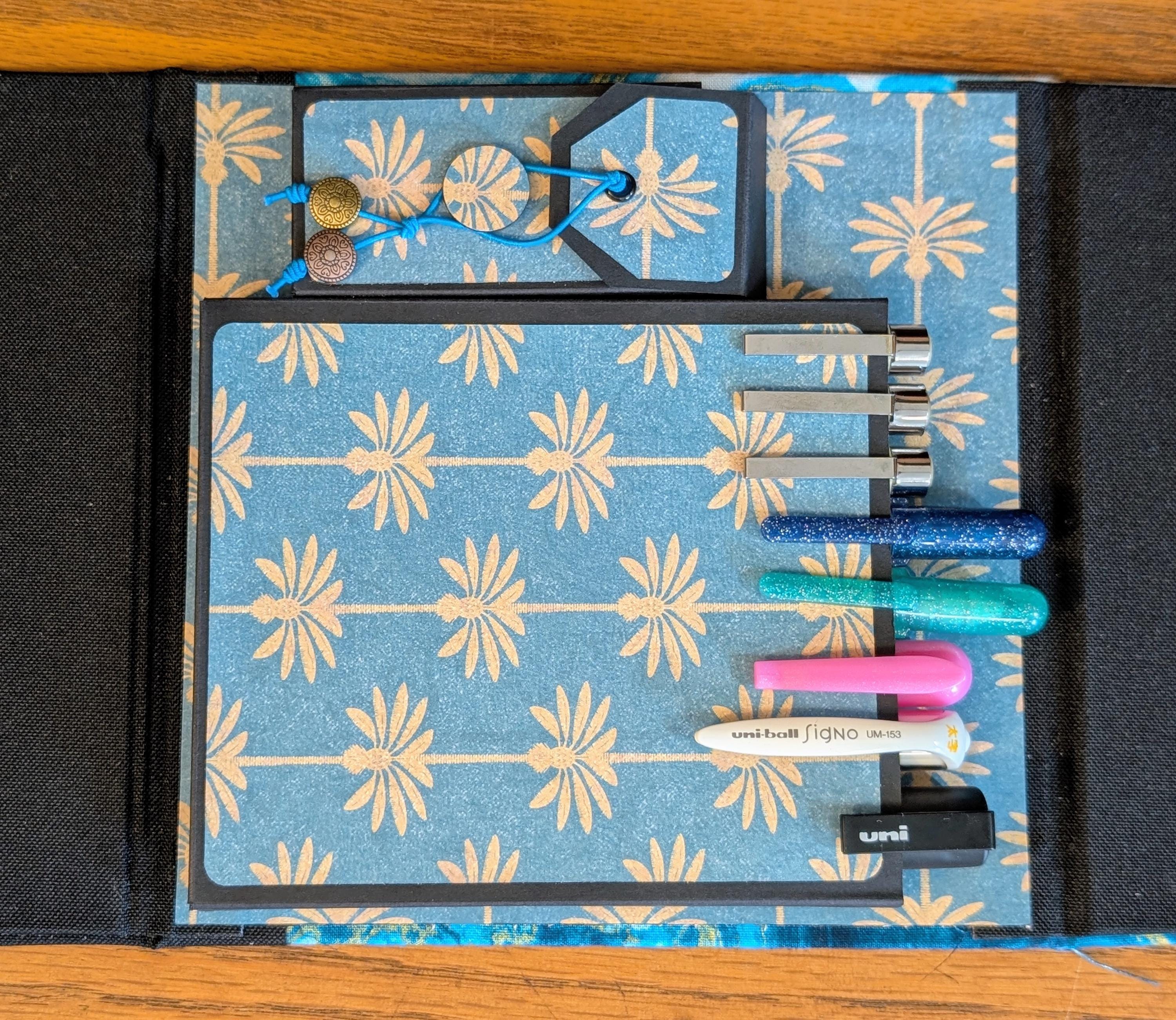 Our Art-To-Go Travel Box is made to fit pens in that are up to six inches in length. This box has the same dimensions as our Pack & Tie Travel Box with Ribbon Closure. The only difference is this has an elastic closure and a slightly different exterior design. The compartment for drawing surfaces is a perfect fit for one or two of our ZigZag Folios or 4.5" x 4.5" artist tiles, making your traveling checklist complete! Covered in durable fabric, these compact traveling art boxes are handmade, making each one unique and one of a kind. They are thoughtfully designed with three separate compartments for travel size drawing surfaces, art pens, and small pencils and tortillons. This art box is compact, making it effortless to slip into a large purse or carry-on bag. Now, you can take your creativity wherever you go.