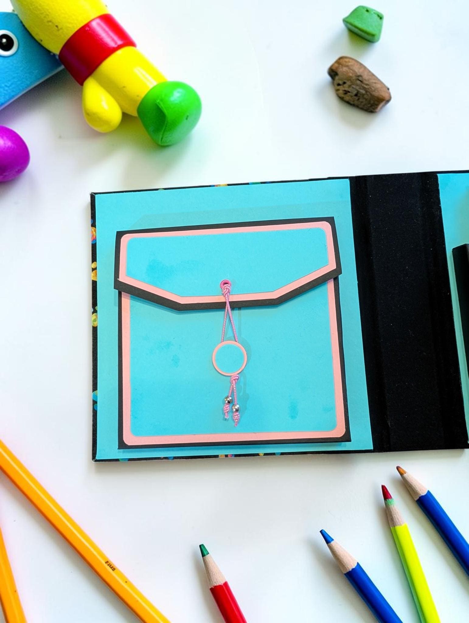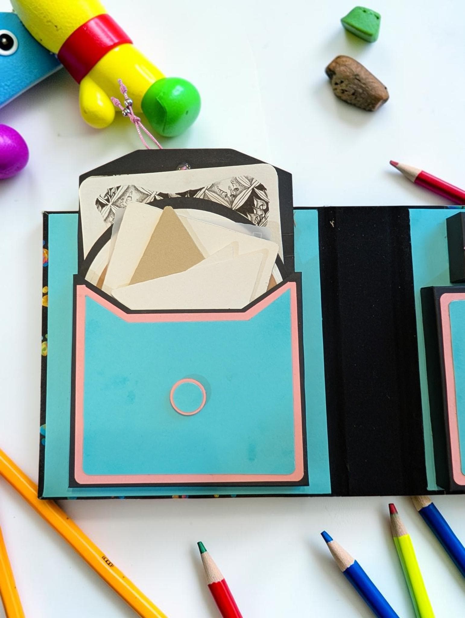 Our Art-To-Go Travel Box is made to fit pens in that are up to six inches in length. This box has the same dimensions as our Pack & Tie Travel Box with Ribbon Closure. The only difference is this has an elastic closure and a slightly different exterior design. The compartment for drawing surfaces is a perfect fit for one or two of our ZigZag Folios or 4.5" x 4.5" artist tiles, making your traveling checklist complete! Covered in durable fabric, these compact traveling art boxes are handmade, making each one unique and one of a kind. They are thoughtfully designed with three separate compartments for travel size drawing surfaces, art pens, and small pencils and tortillons. This art box is compact, making it effortless to slip into a large purse or carry-on bag. Now, you can take your creativity wherever you go.