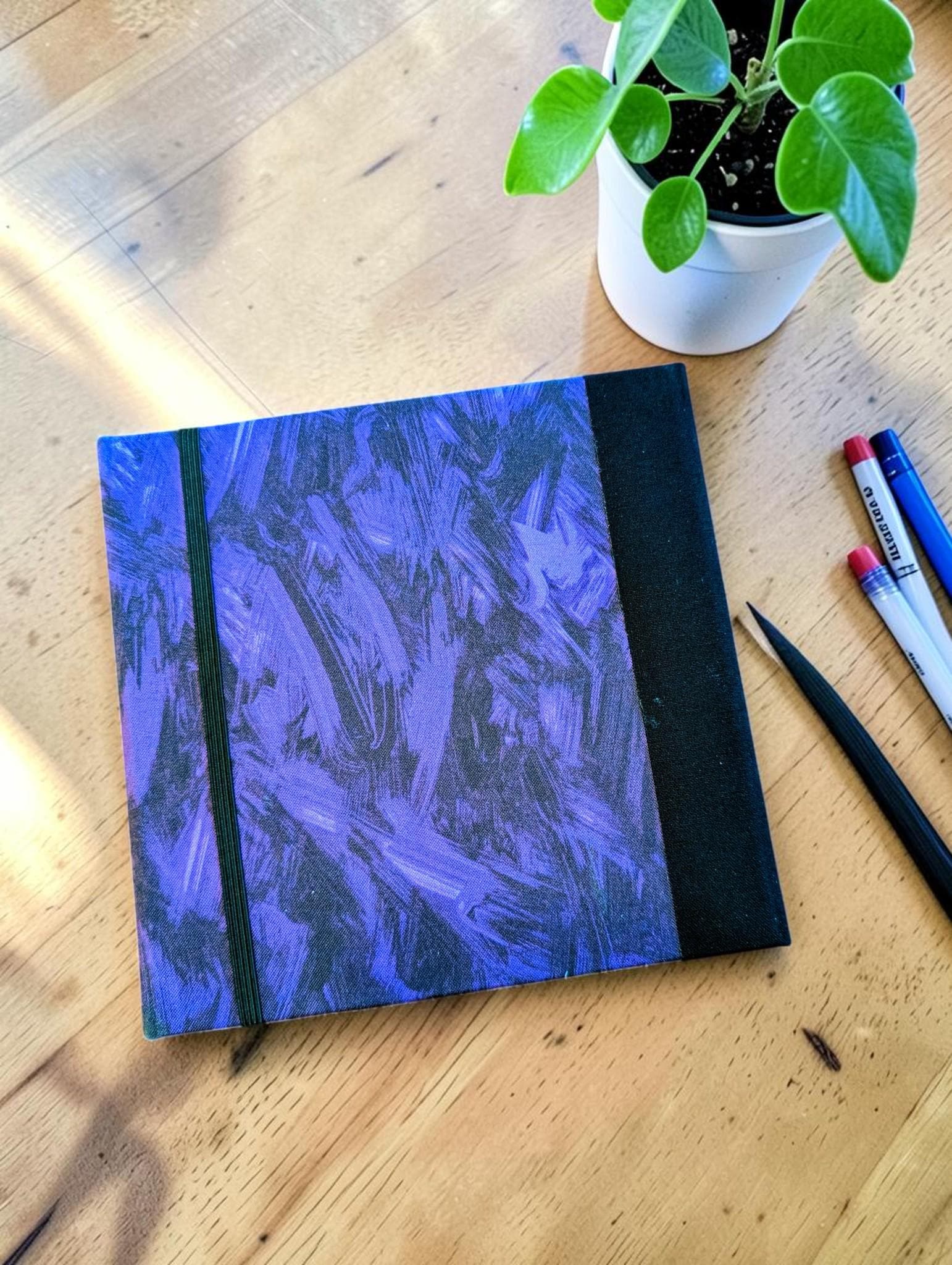 Our Art-To-Go Travel Box is made to fit pens in that are up to six inches in length. This box has the same dimensions as our Pack & Tie Travel Box with Ribbon Closure. The only difference is this has an elastic closure and a slightly different exterior design. The compartment for drawing surfaces is a perfect fit for one or two of our ZigZag Folios or 4.5" x 4.5" artist tiles, making your traveling checklist complete! Covered in durable fabric, these compact traveling art boxes are handmade, making each one unique and one of a kind. They are thoughtfully designed with three separate compartments for travel size drawing surfaces, art pens, and small pencils and tortillons. This art box is compact, making it effortless to slip into a large purse or carry-on bag. Now, you can take your creativity wherever you go.